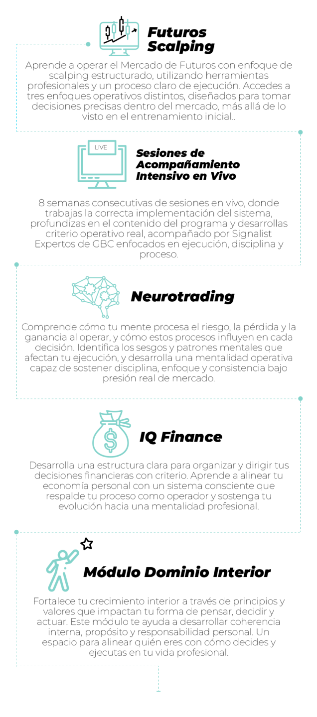 para ayudarte a desarrollar criterio, estructura y ejecución profesional en el Mercado de Futuros.